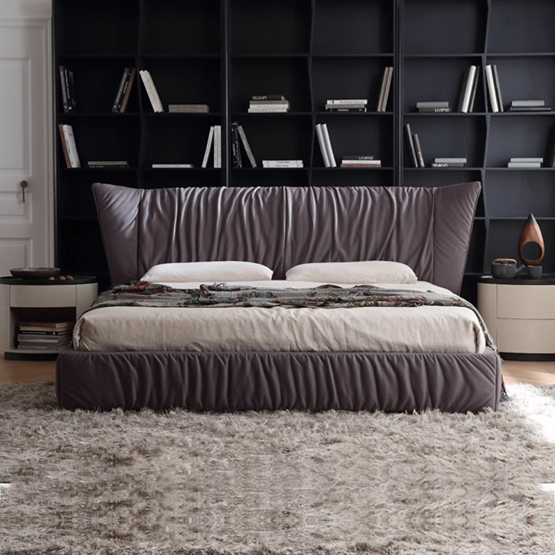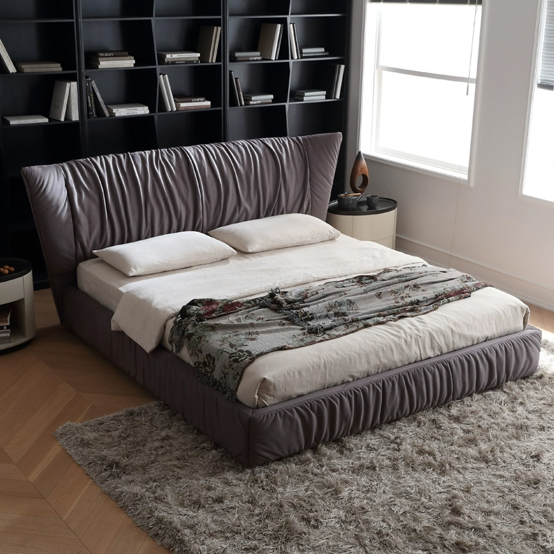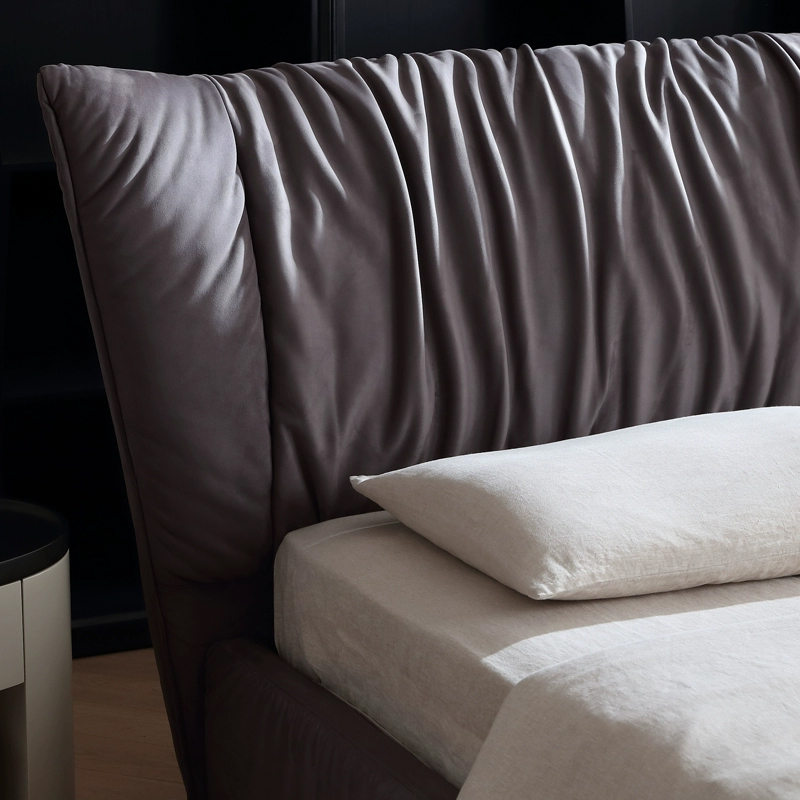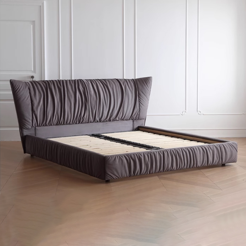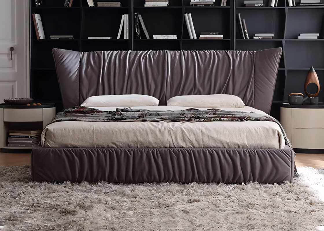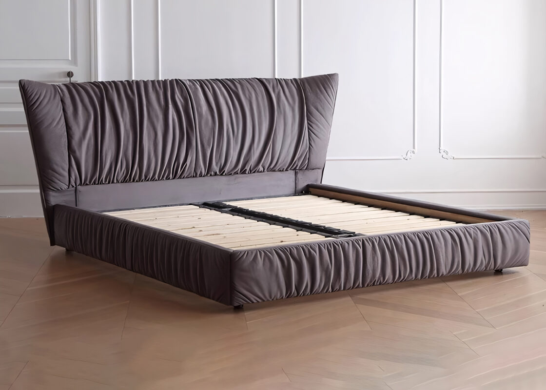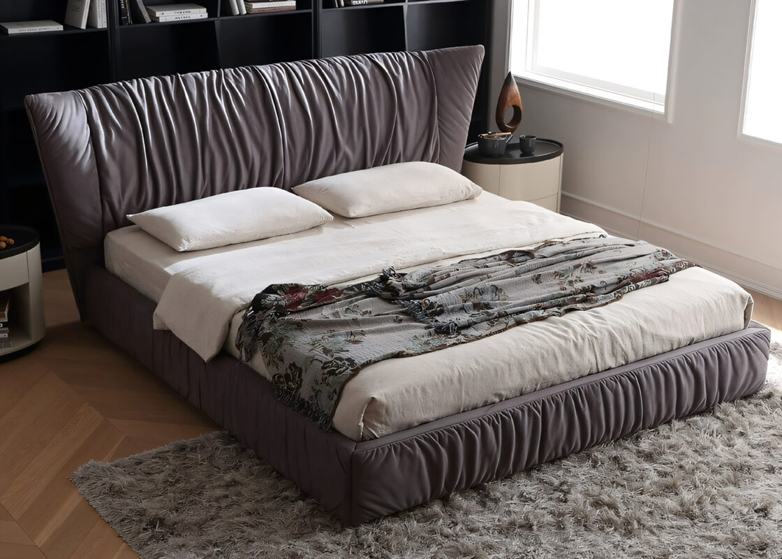 The headboard is crafted with vertical stitching technique, paired with a soft beige fabric. The texture is exquisite and the touch is smooth. The “floating” slender metal legs give the bed a sense of “floating” in the space, injecting a modern minimalist artistic atmosphere into the bedroom. It serves as both a sleeping platform and the focal point of the interior decoration.