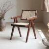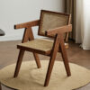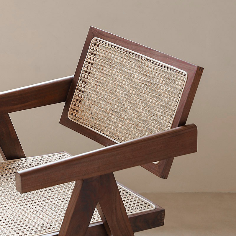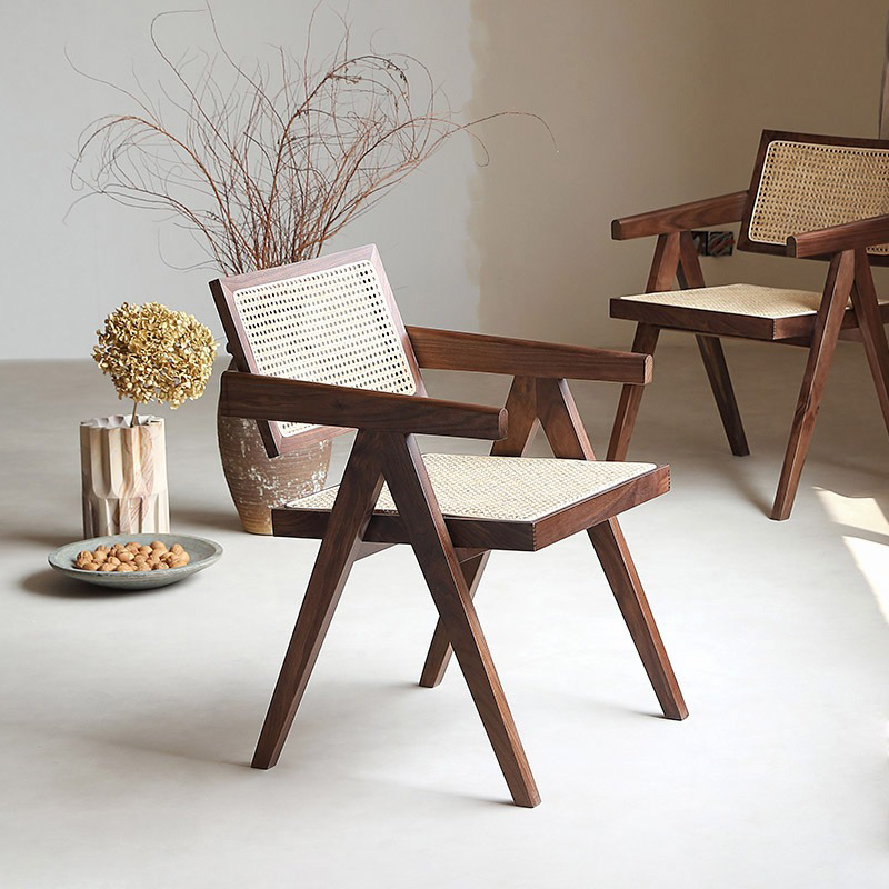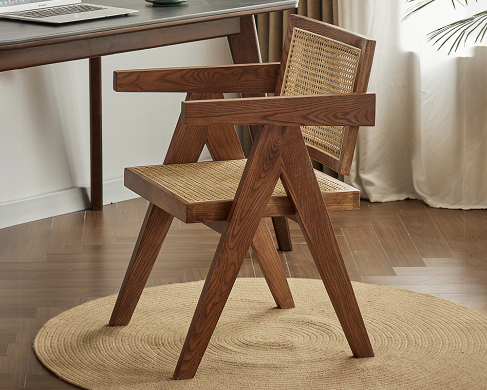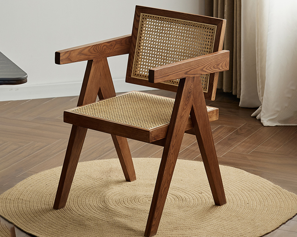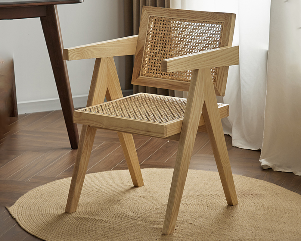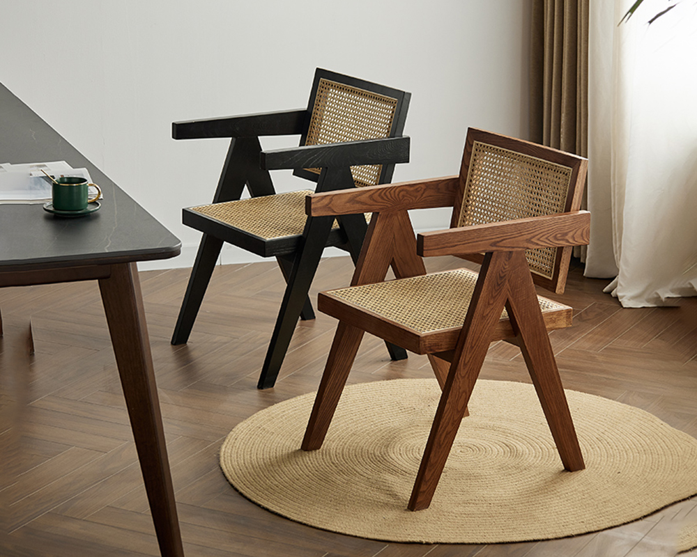 The frame is made of high-quality solid wood, which is sturdy, durable and has a natural and beautiful texture, fully showcasing the quality. The seat and backrest are made using rattan weaving technique, blending retro and modern minimalist styles. The lines are neat and elegant, breathable and comfortable, while carrying a natural and rustic atmosphere, with a strong sense of craftsmanship.